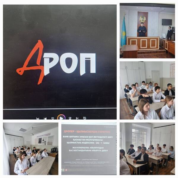 Іс-шараның мақсаты жастарды заңсыз әрекеттерге араласудан қорғау болды. Дропперлік – қылмыстық жолмен алынған қаражатты аудару және қолма-қол ақшаға айналдыру кезінде делдал ретінде әрекет ету. Алаяқтар көбінесе жастарды іздеп, банк картасымен жасалған операциялар үшін «жеңіл ақша» ұсынады. Дегенмен, мұндай «жұмыс» ақшаны жұмсауда көмек көрсеткені және оны қолдағаны үшін қылмыстық жауапкершілікке әкеп соғады. «Дроппер» фильмінде тез марапаттауға азғырылған қарапайым жас адамның біртіндеп қылмыстық схемаға қалай араласып кететіні, жағдайды бақылаудан шығарып, нақты заңды жауапкершілікке тартылатыны айқын бейнеленген. Көрсетілімнен кейін қызу пікірталас болды. Оқушыларға жалдаушылар қалай жұмыс істейтіні, онлайн жарнамаларда («операторлар қалаған», «инвестициясыз жылдам ақша») қандай тілде күдік тудыруы керектігі және мұндай әрекеттердің заңды салдары түсіндірілді. Балаларға ақшаның шығу тегін білмеу де оларды жауапкершіліктен босатпайтыны түсіндірілді. Іс-шара оларды байыпты ойлануға мәжбүр етті.