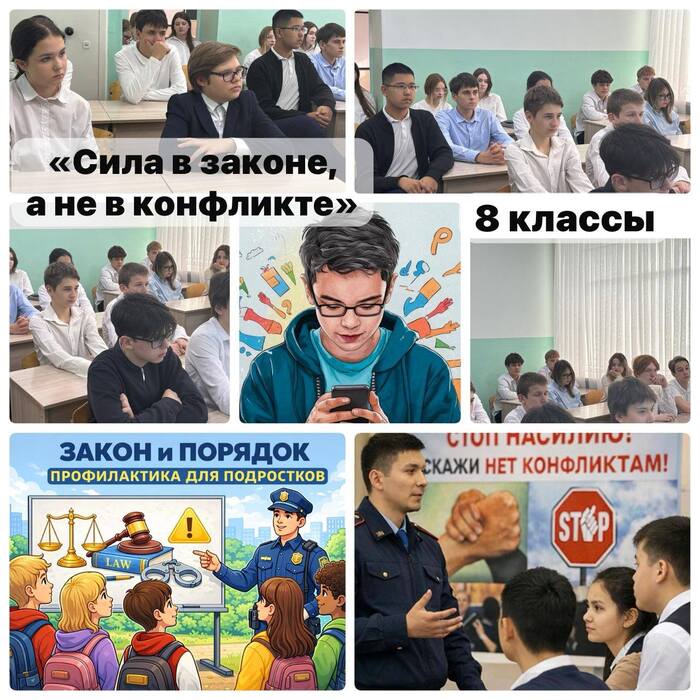 В рамках месячника «Созидание и новаторство» с целью повышения правовой грамотности, в школе-гимназии №47 проведена профилактическая беседа с учащимися 8–11 классов на тему профилактики насилия и предотвращения групповых конфликтов (в рамках идеологии «Закон и порядок»).