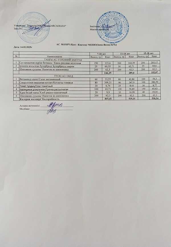 Меню за 14.02.2025г.